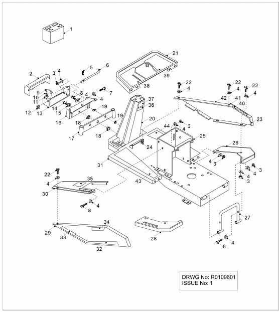 Zeichnung von ECHO-Motorgeräte Rasentraktoren Rider-Mäher E-2000HY Bj. 95-96 Rahmen, Vorderachse, Batterie: