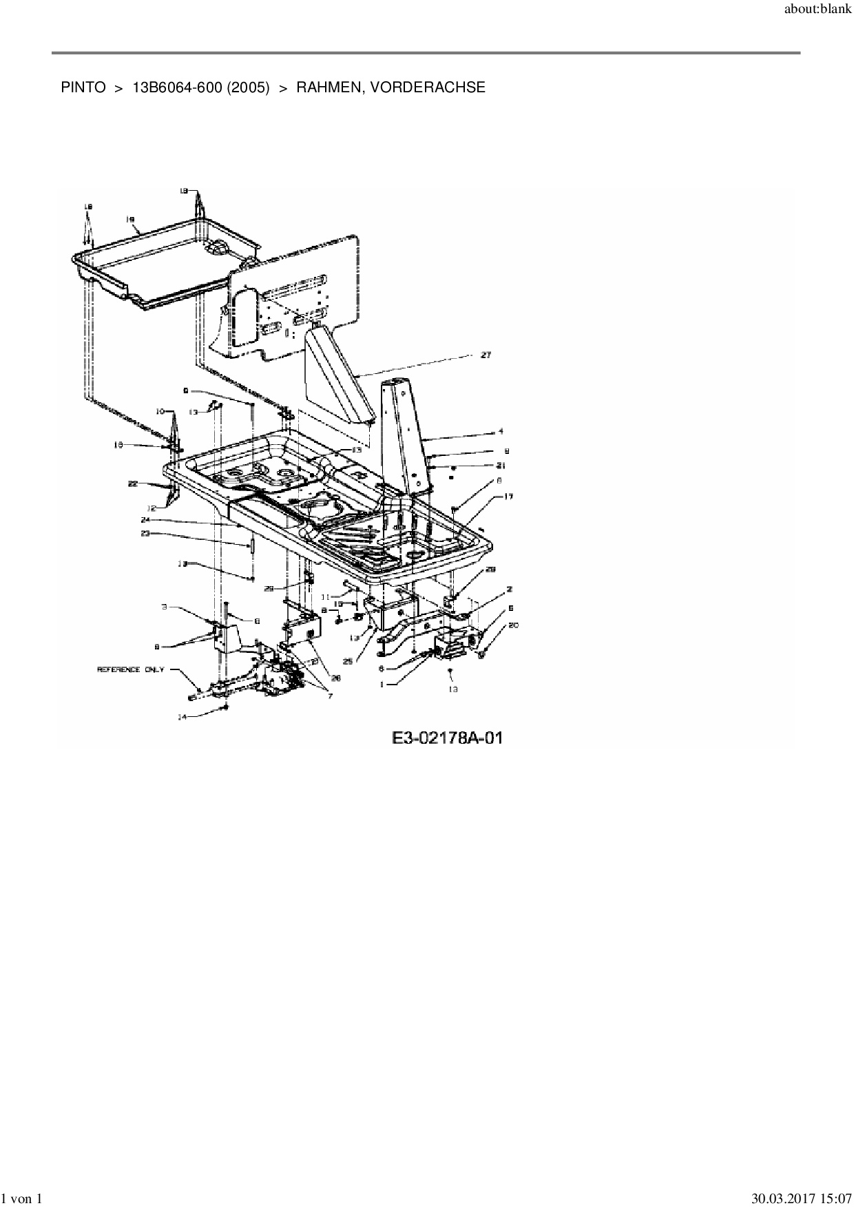 Ersatzteile für Rasentraktor MTD Pinto aus der Zeichnung Rahmen, Vorderachse: