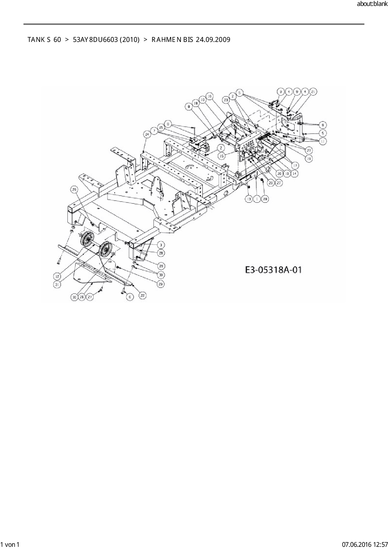 Ersatzteile für Zero Turn Cub Cadet Tank S 60 aus der Zeichnung Rahmen bis 24.09.2009: