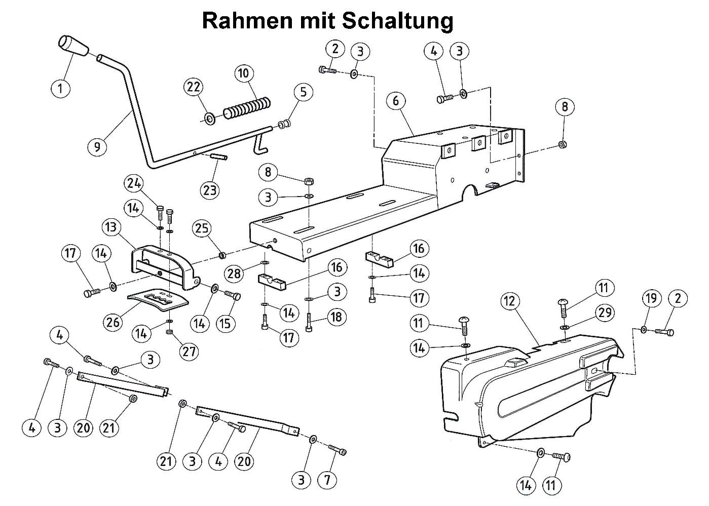 Hier finden Sie alle Ersatzteile von AS-Motor Schlegelmäher AS 557 SM ab FNr. 025214070001 aus dem Zeichnungsblatt Rahmen mit Schaltung:
