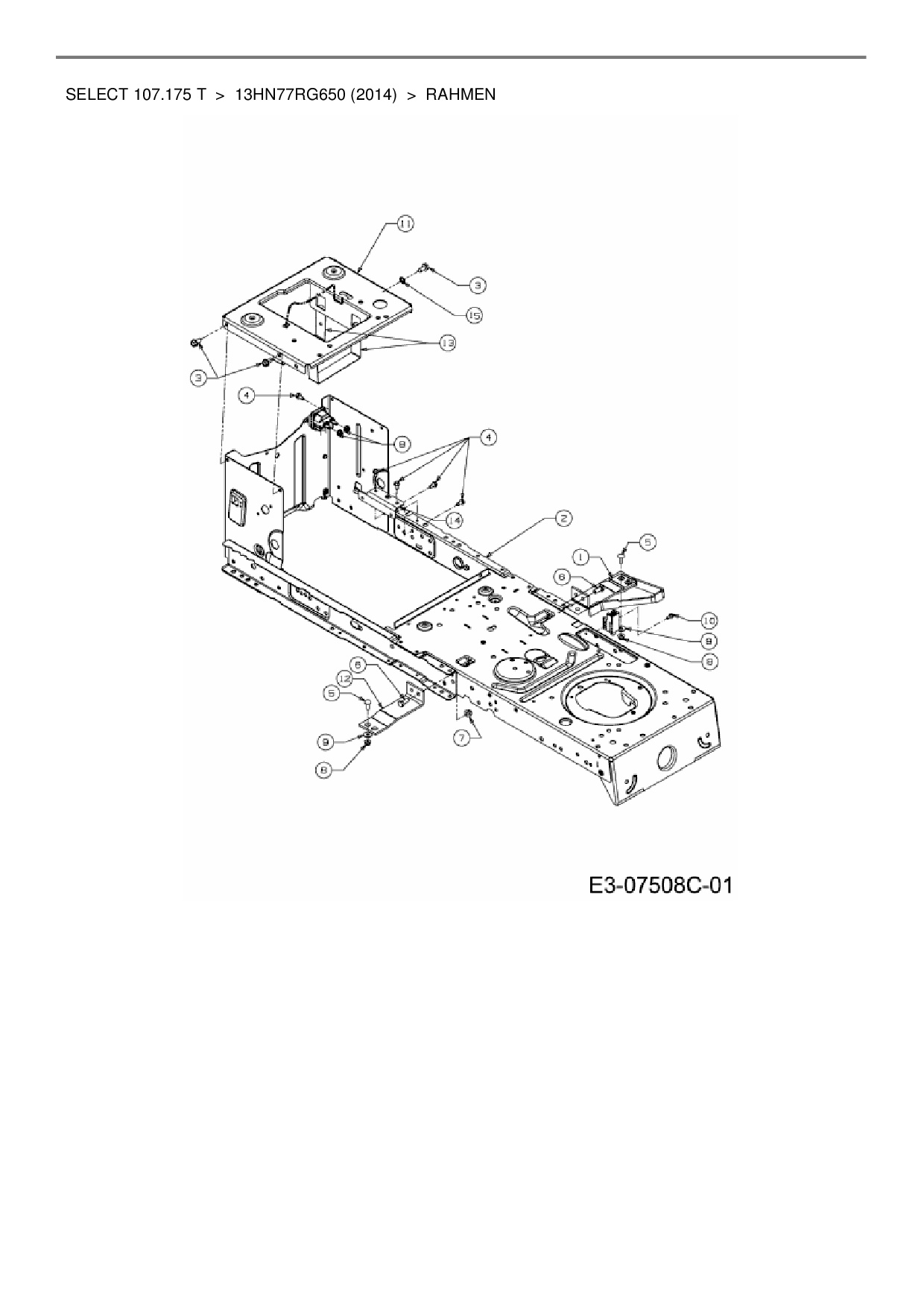 Ersatzteile für Rasentraktor Wolf-Garten Select 107.175 T aus der Zeichnung Rahmen: