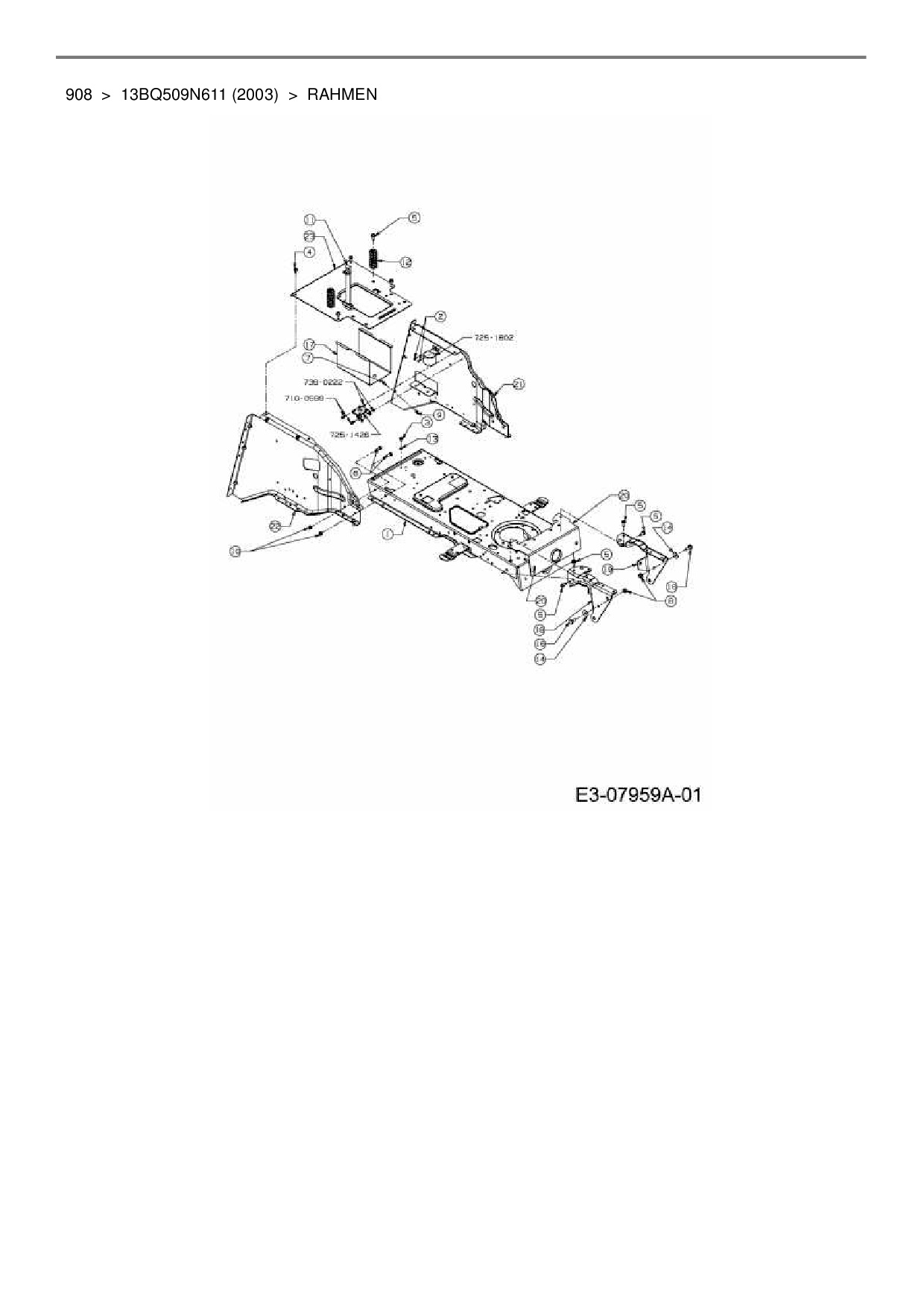 Zeichnung für Lawnflite Rasentraktor 908 mit der Geräte-Artikelnr. 13BQ509N611 ab Baujahr 2003: