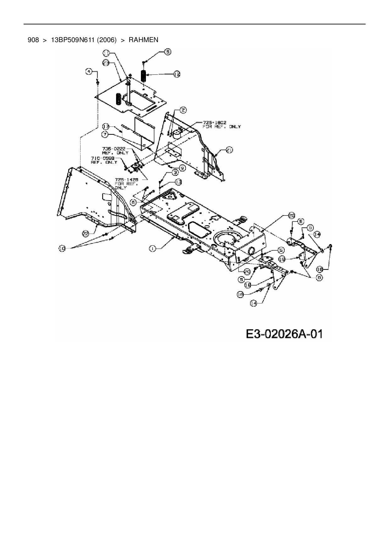 Ersatzteile für Rasentraktor Lawnflite 908 aus der Zeichnung Rahmen: