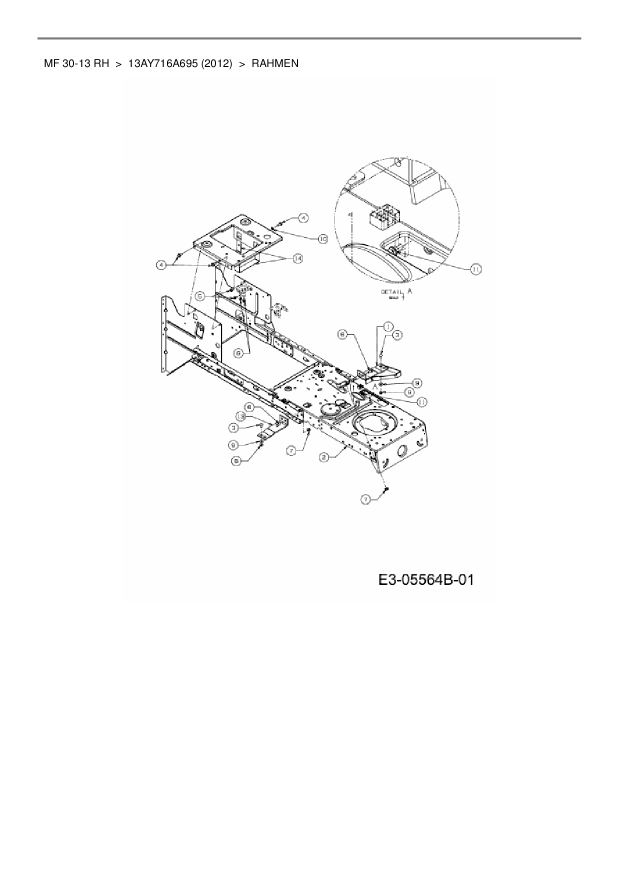 Ersatzteile für Rasentraktor Massey Ferguson MF 30-13 RH aus der Zeichnung Rahmen: