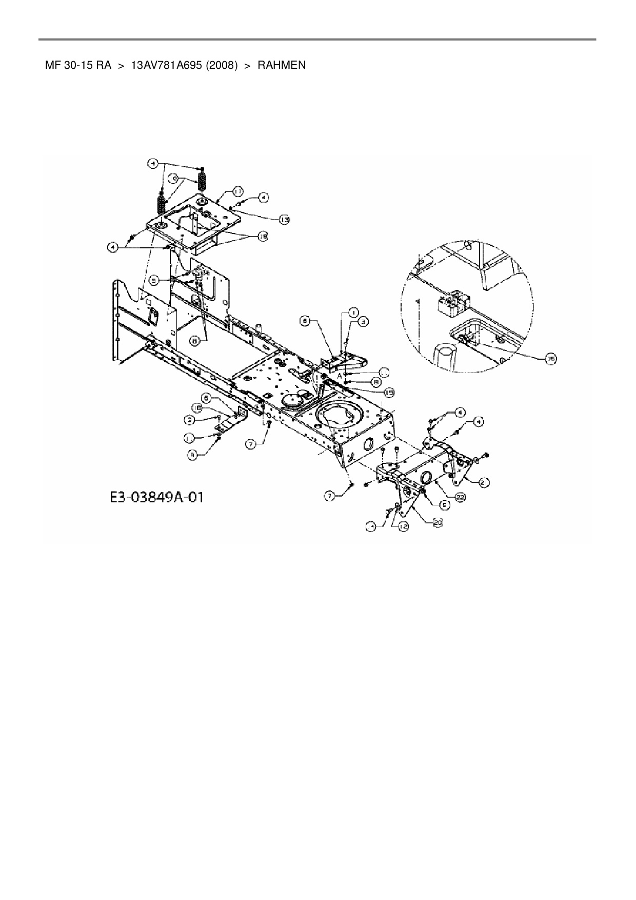 Ersatzteile für Rasentraktor Massey Ferguson MF 30-15 RA aus der Zeichnung Rahmen: