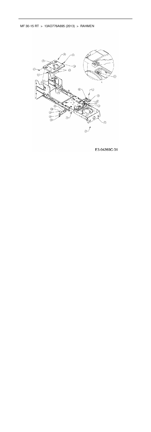 Zeichnung für Massey Ferguson Rasentraktor MF 30-15 RT mit der Geräte-Artikelnr. 13AD776A695 ab Baujahr 2013:
