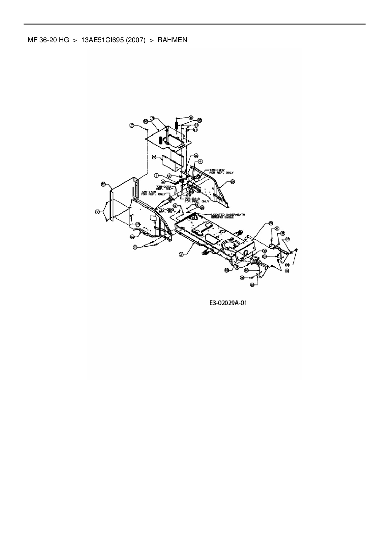 Ersatzteile für Rasentraktor Massey Ferguson MF 36-20 HG aus der Zeichnung Rahmen: