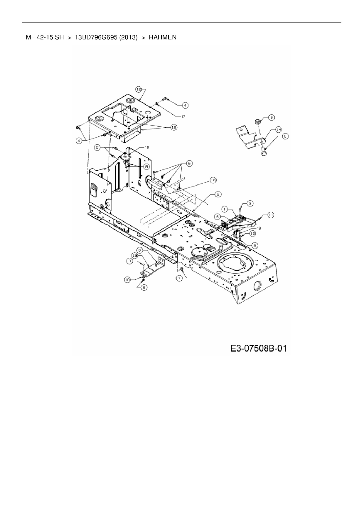 Zeichnung für Massey Ferguson Rasentraktor MF 42-15 SH mit der Geräte-Artikelnr. 13BD796G695 ab Baujahr 2013: