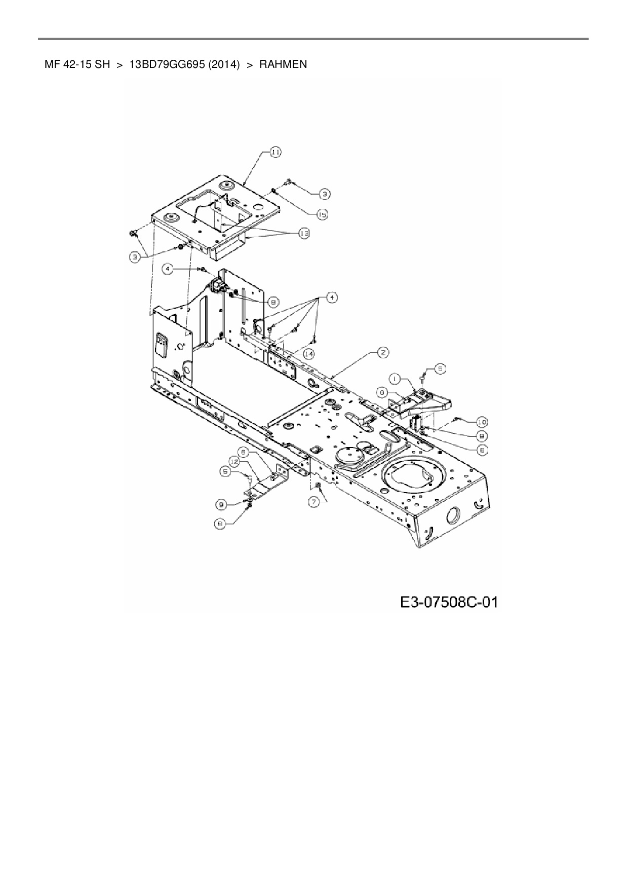 Zeichnung für Massey Ferguson Rasentraktor MF 42-15 SH mit der Geräte-Artikelnr. 13BD79GG695 ab Baujahr 2014: