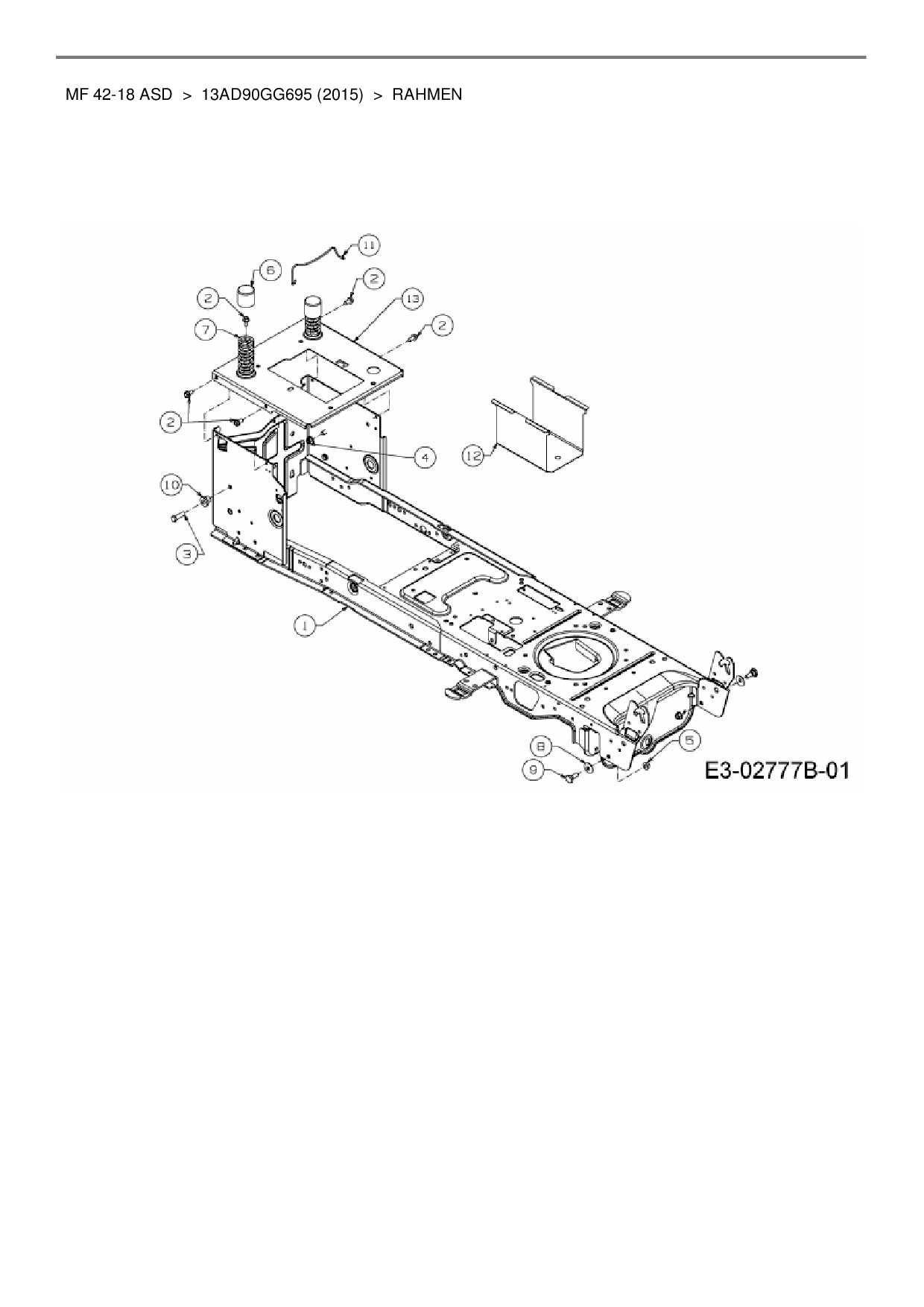 Ersatzteile für Rasentraktor Massey Ferguson MF 42-18 ASD aus der Zeichnung Rahmen: