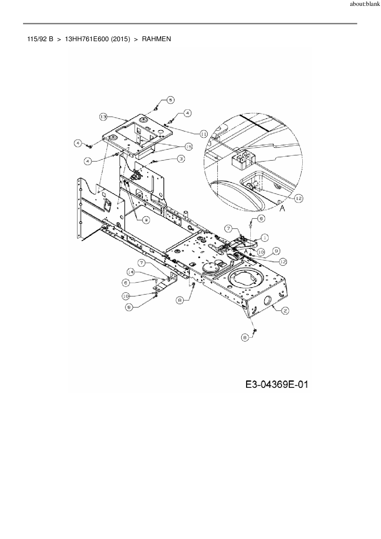 Ersatzteile für Rasentraktor MTD 115/92 B aus der Zeichnung Rahmen: