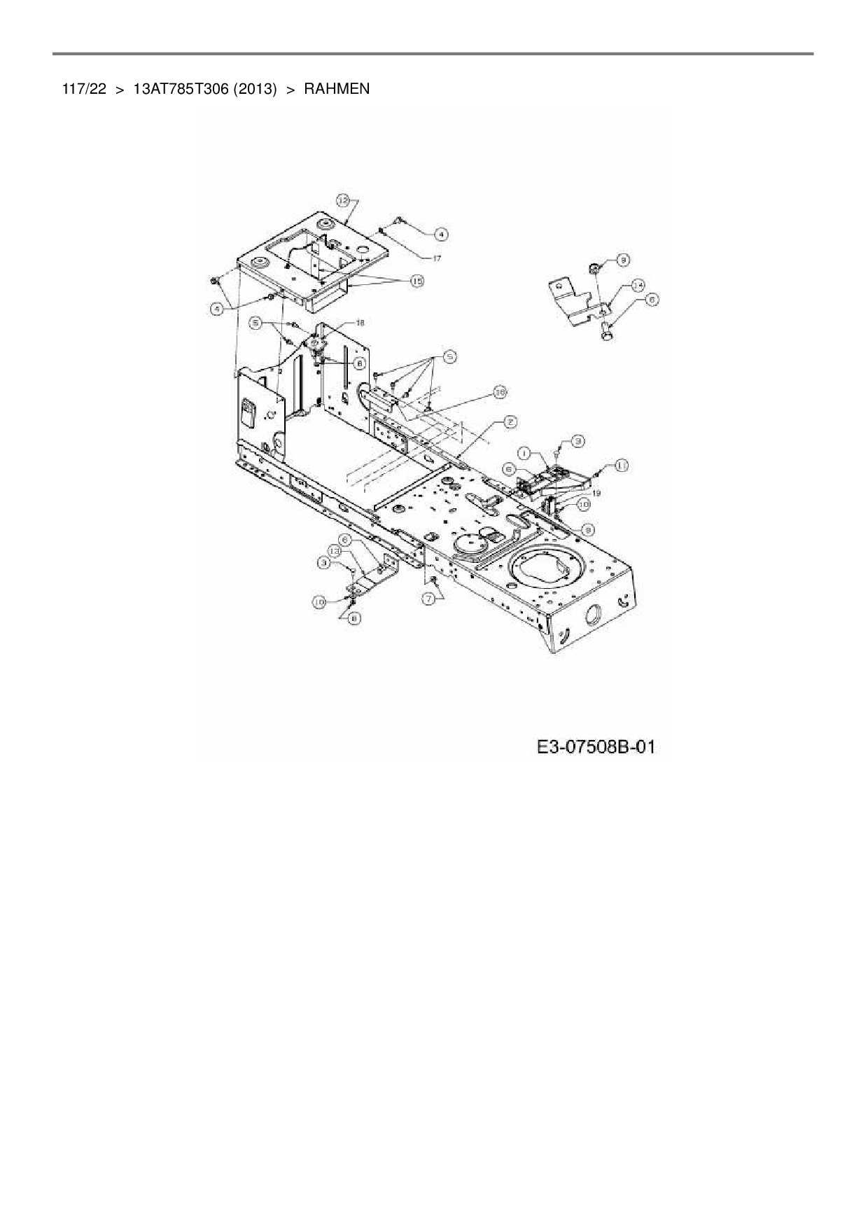 Zeichnung für MTD Rasentraktor 117/22 mit der Geräte-Artikelnr. 13AT785T306 ab Baujahr 2013: