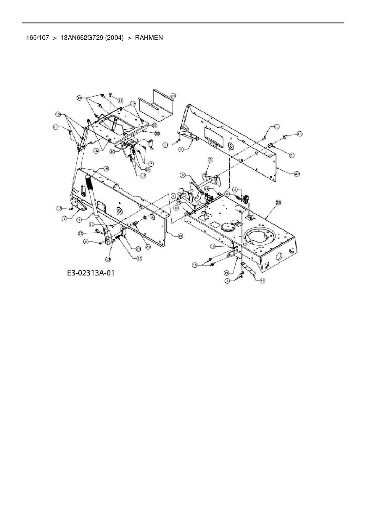 Download Ersatzteil-Zeichnung MTD 165/107 Zeichnung Rahmen (PDF-Format)