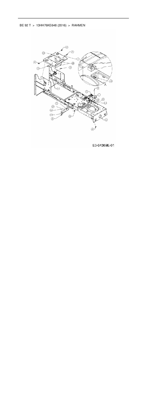 Download Ersatzteil-Zeichnung MTD BE 92 T Zeichnung Rahmen (PDF-Format)