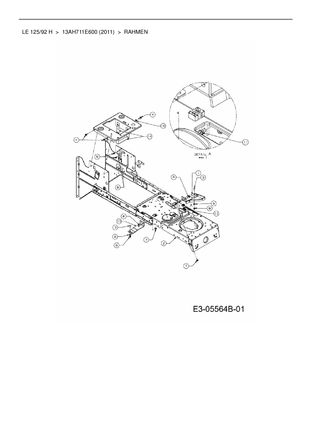 Ersatzteile für Rasentraktor MTD LE 125/92 H aus der Zeichnung Rahmen: