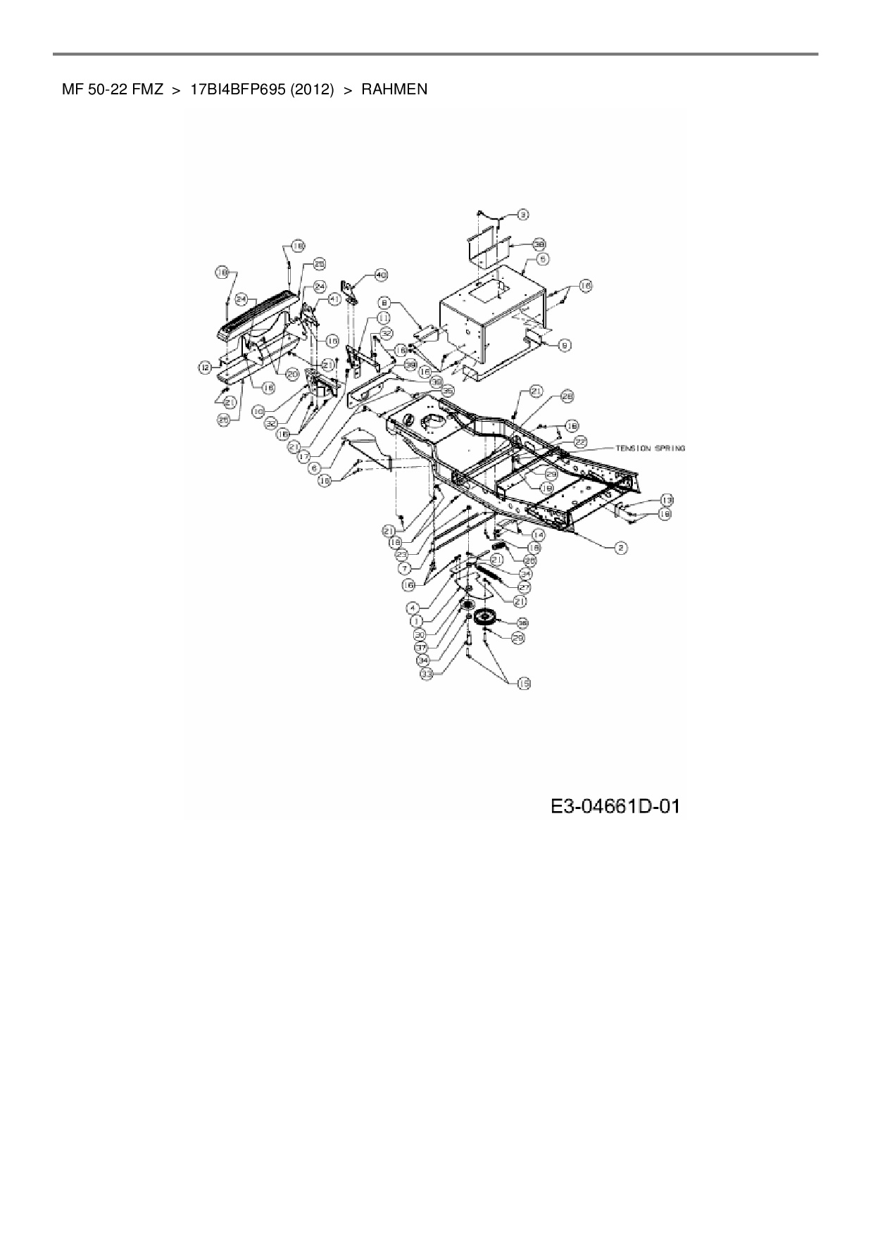 Zeichnung für Massey Ferguson Zero Turn MF 50-22 FMZ mit der Geräte-Artikelnr. 17BI4BFP695 ab Baujahr 2012: