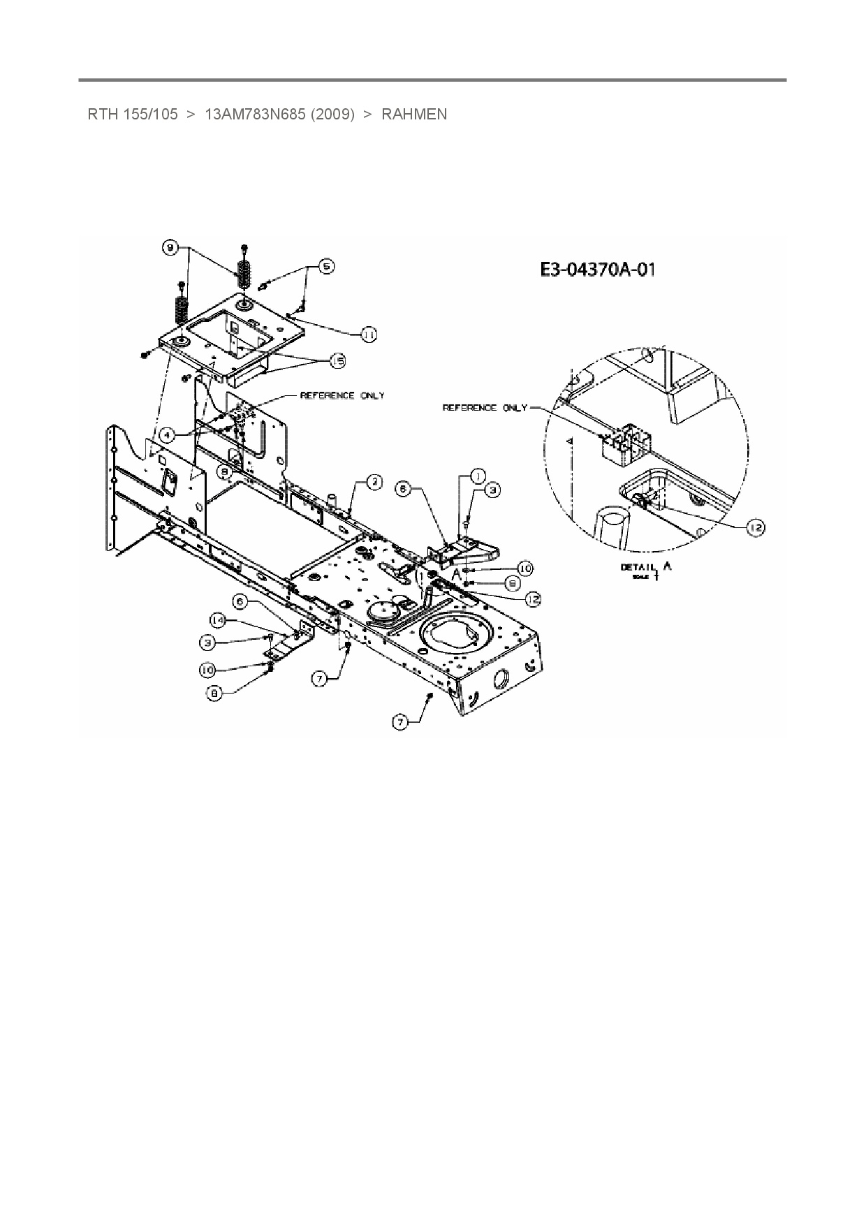 Ersatzteile für Rasentraktor Sunline RTH 155/105 aus der Zeichnung Rahmen: