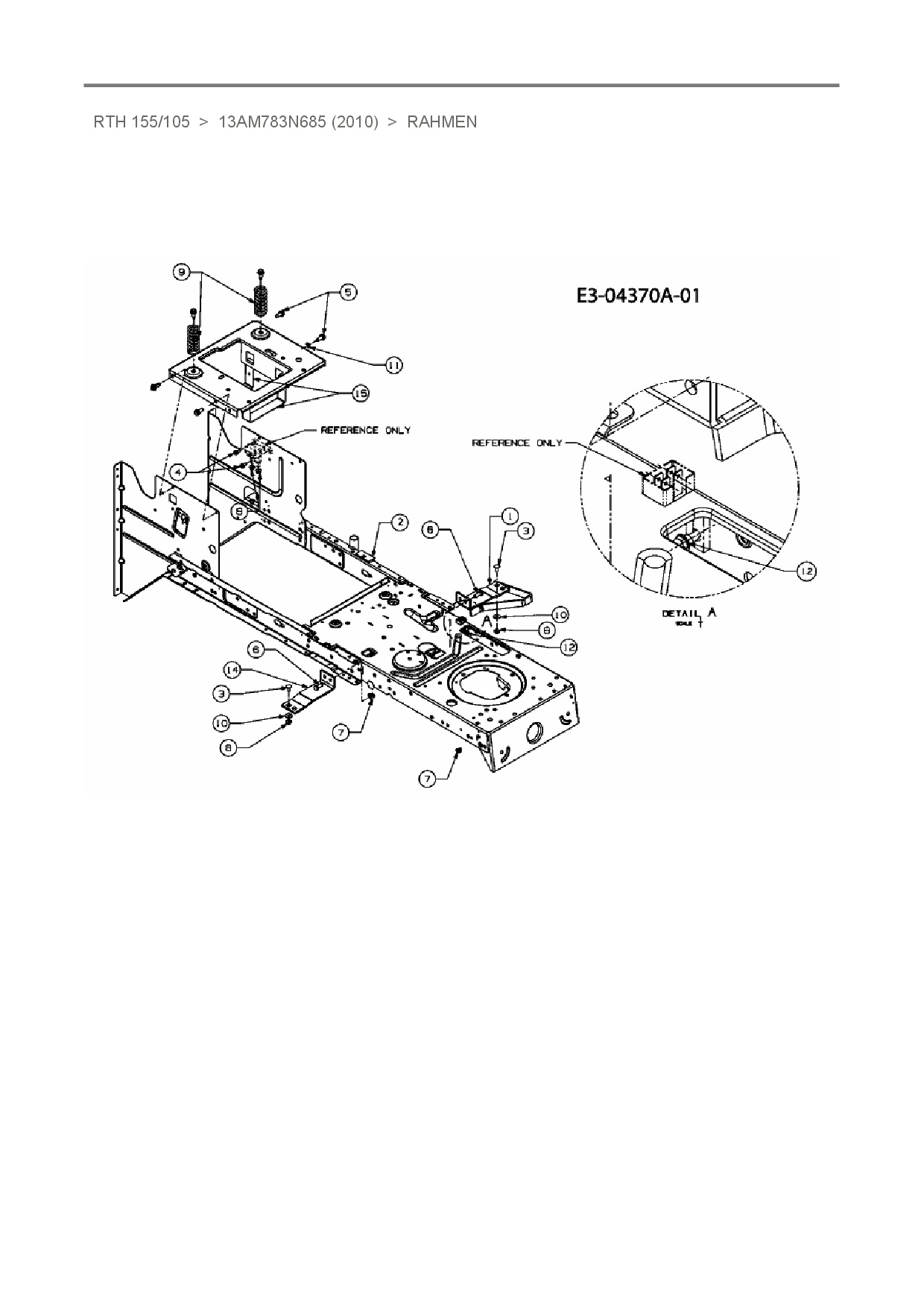 Ersatzteile für Rasentraktor Sunline RTH 155/105 aus der Zeichnung Rahmen:
