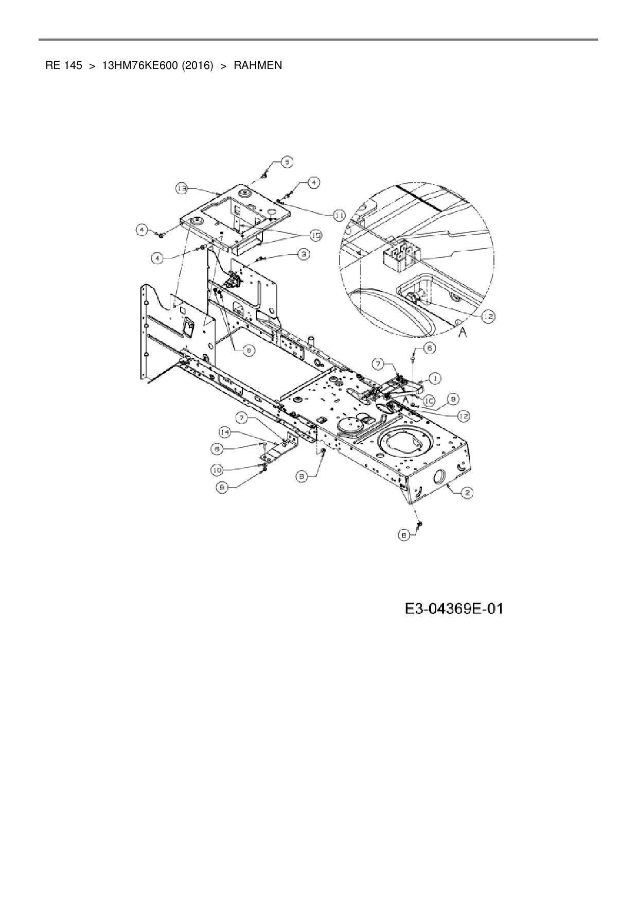 Ersatzteile für Rasentraktor MTD RE 145 aus der Zeichnung Rahmen: