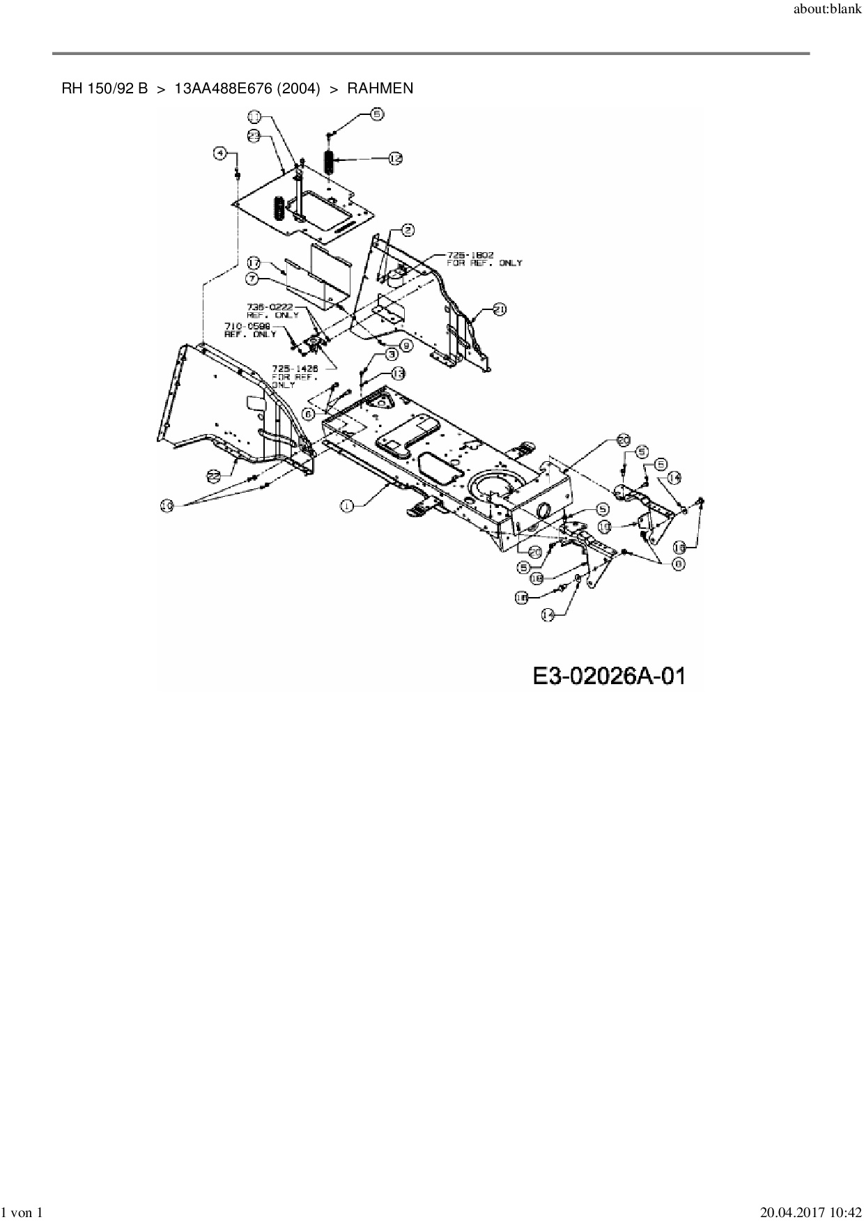 Download Ersatzteil-Zeichnung MTD RH 150/92 B Zeichnung Rahmen (PDF-Format)