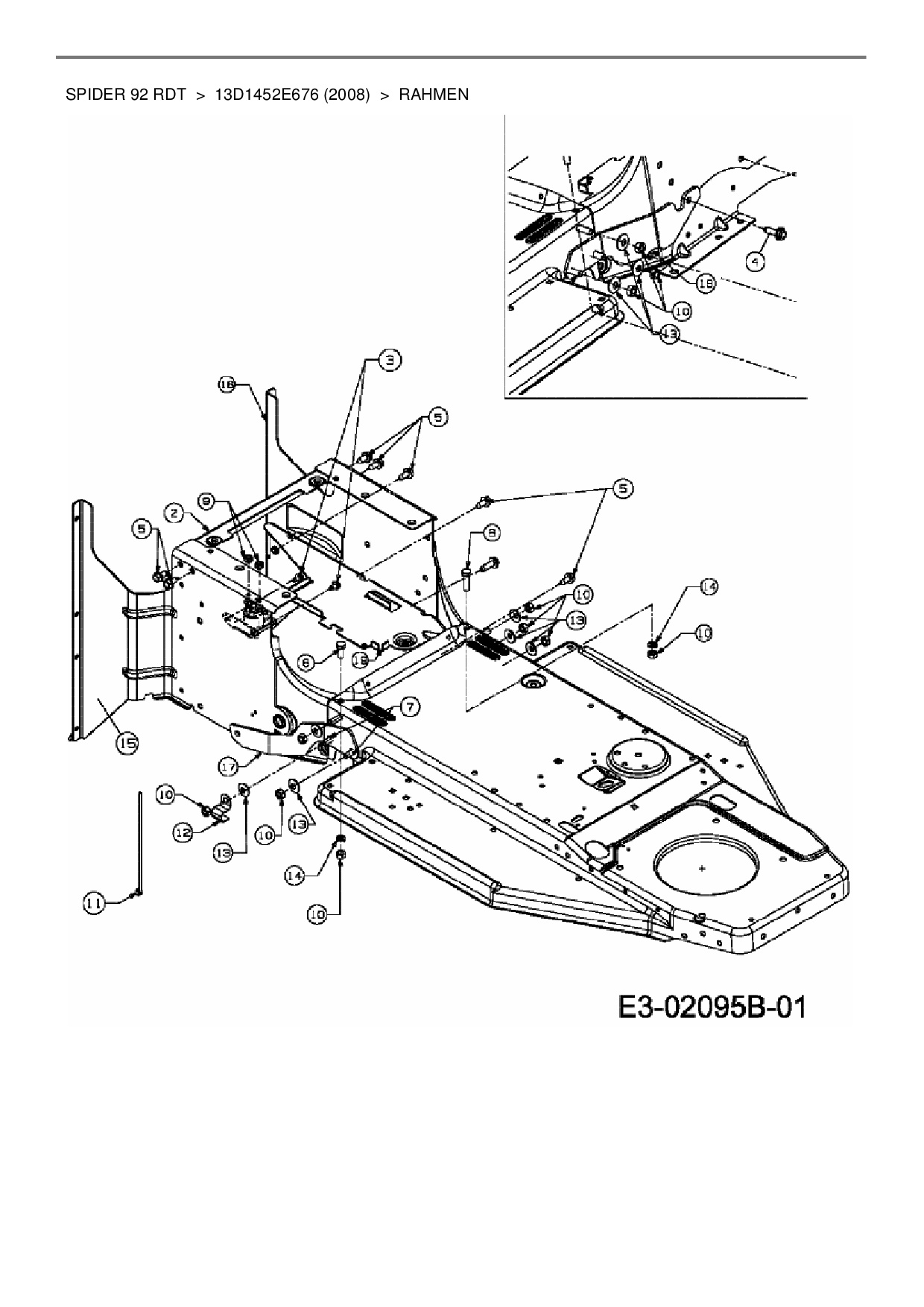 Ersatzteile für Rasentraktor MTD Spider 92 RDT aus der Zeichnung Rahmen: