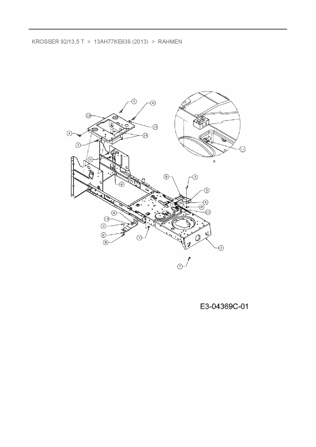 Zeichnung für Oleo-Mac Rasentraktor Krosser 92/13,5 T mit der Geräte-Artikelnr. 13AH77KE636 ab Baujahr 2013: