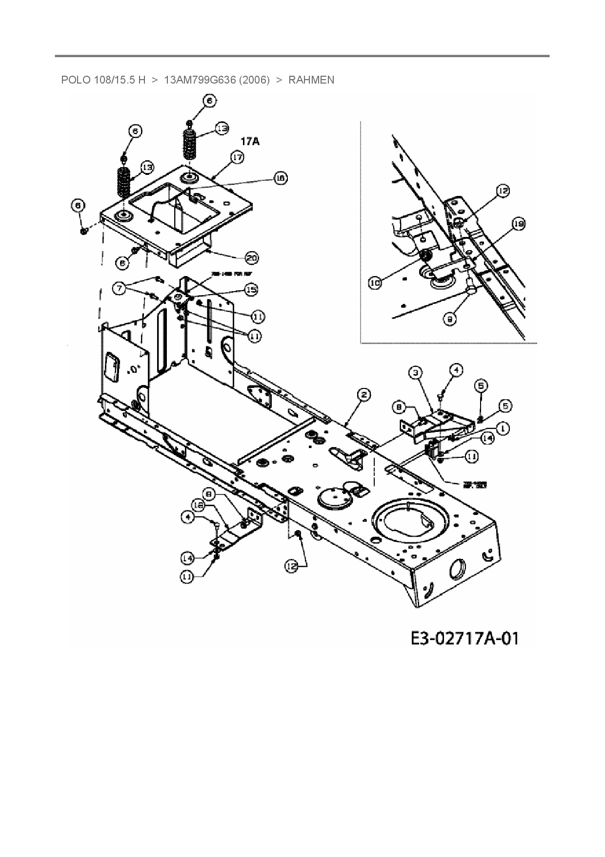 Ersatzteile für Rasentraktor Oleo-Mac Polo 108/15.5 H aus der Zeichnung Rahmen: