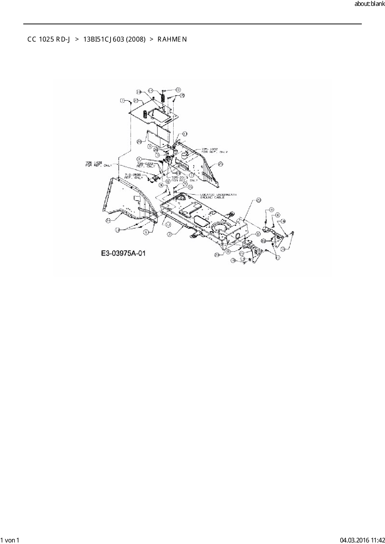 Ersatzteile für Rasentraktor Cub Cadet CC 1025 RD-J aus der Zeichnung Rahmen: