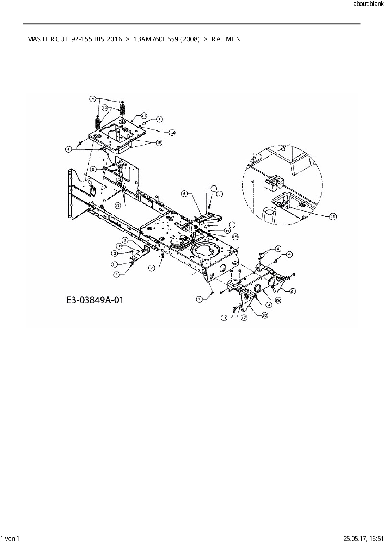 Download Ersatzteil-Zeichnung Mastercut Mastercut 92-155 bis 2016 Zeichnung Rahmen (PDF-Format)