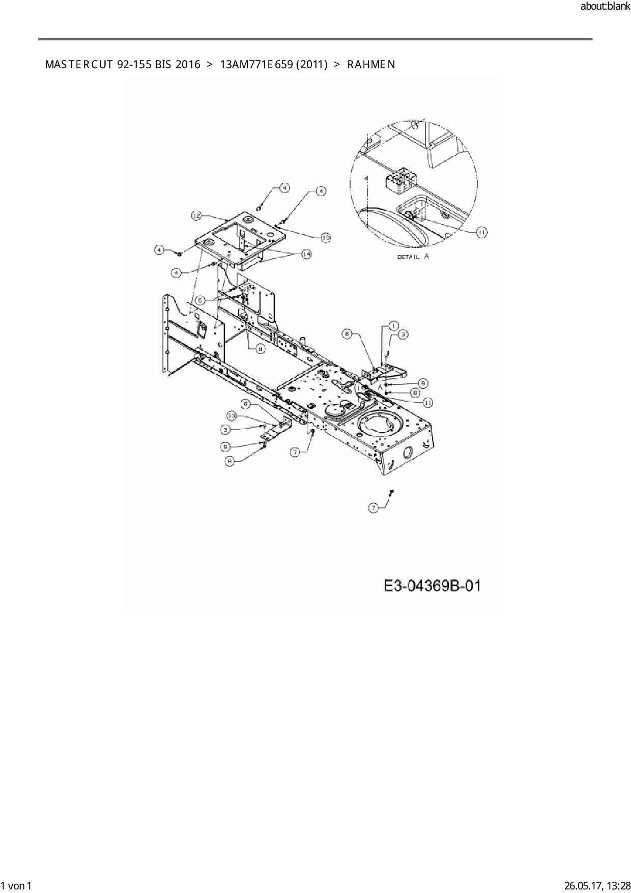 Ersatzteile für Rasentraktor Mastercut Mastercut 92-155 bis 2016 aus der Zeichnung Rahmen: