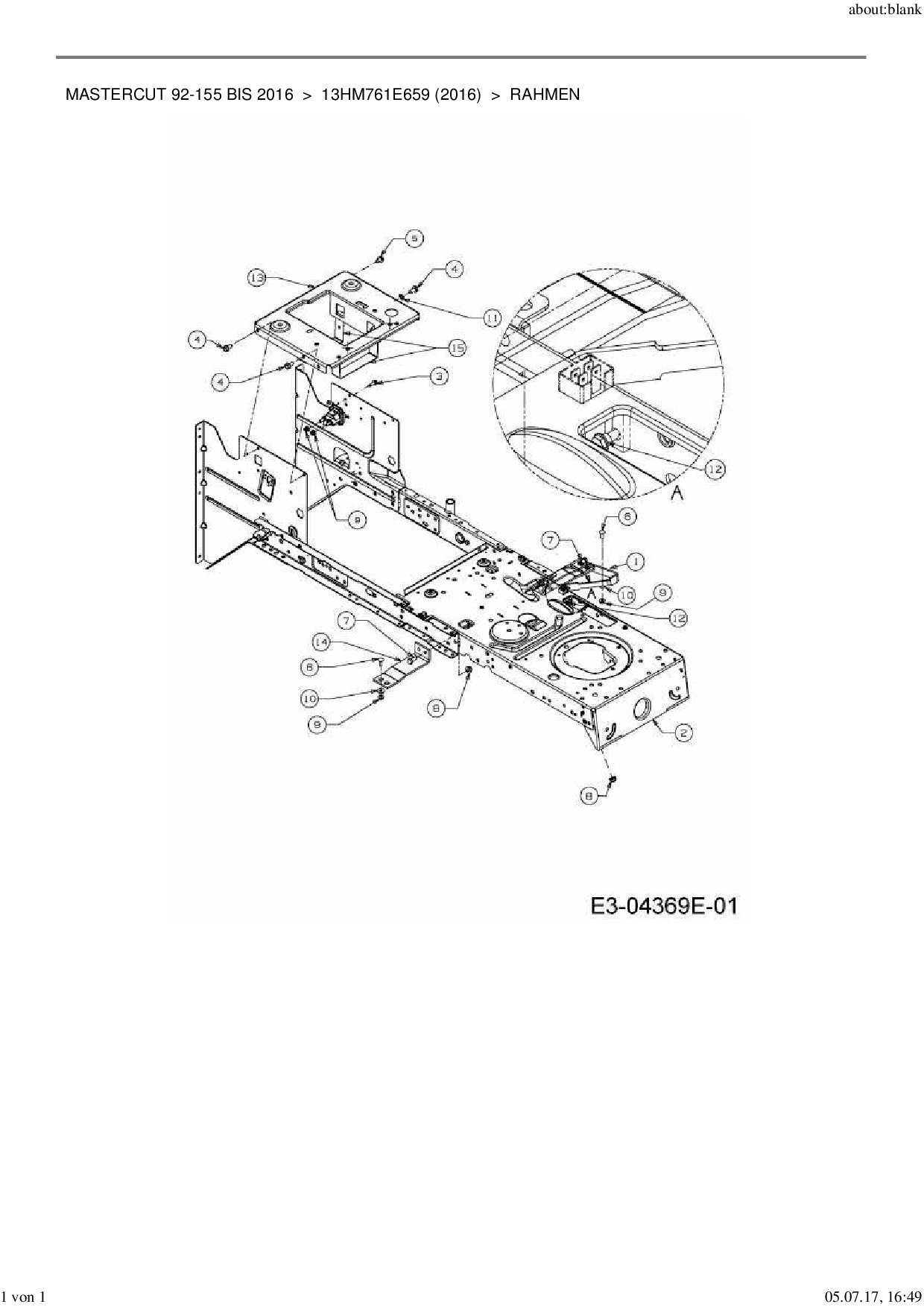 Download Ersatzteil-Zeichnung Mastercut Mastercut 92-155 bis 2016 Zeichnung Rahmen (PDF-Format)