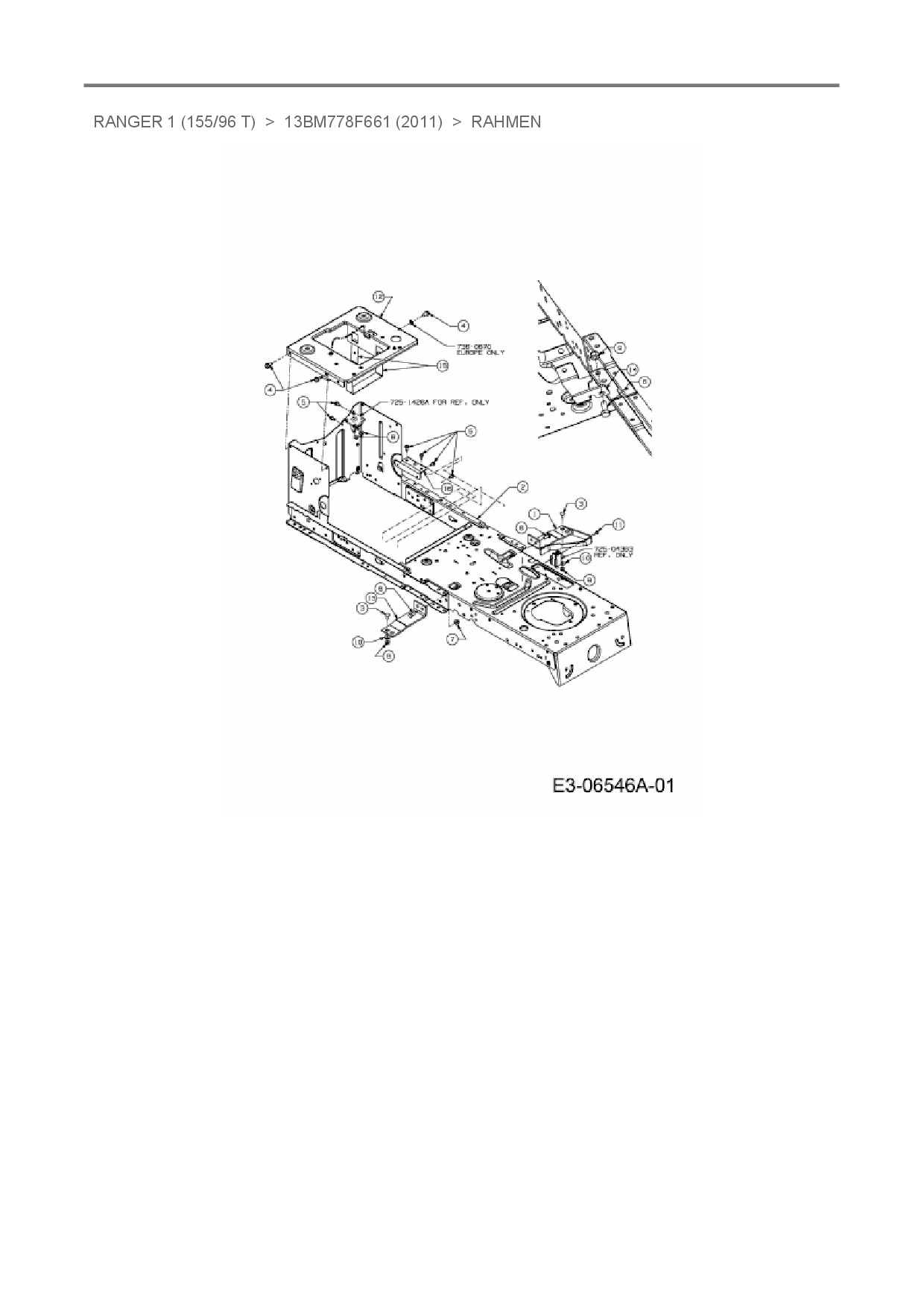 Ersatzteile für Rasentraktor Ranger Ranger 1 (155/96 T) aus der Zeichnung Rahmen: