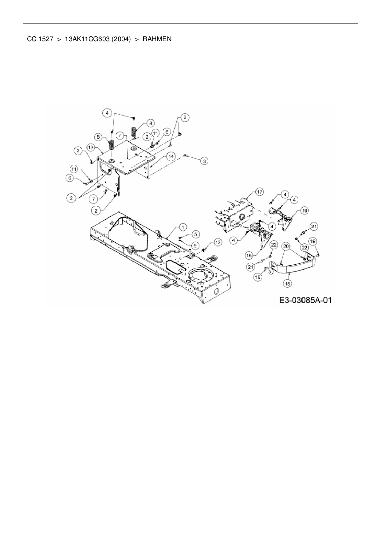 Ersatzteile für Rasentraktor Cub Cadet CC 1527 aus der Zeichnung Rahmen: