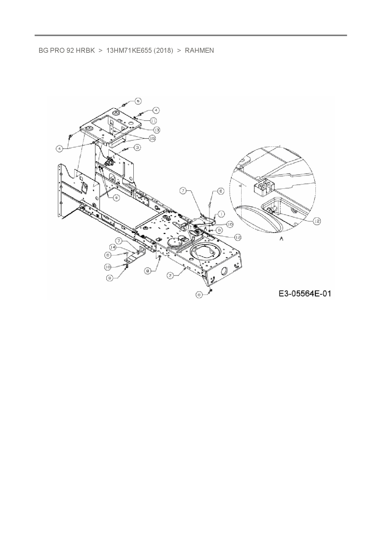 Zeichnung für Bestgreen Rasentraktor BG Pro 92 HRBK mit der Geräte-Artikelnr. 13HM71KE655 ab Baujahr 2018:
