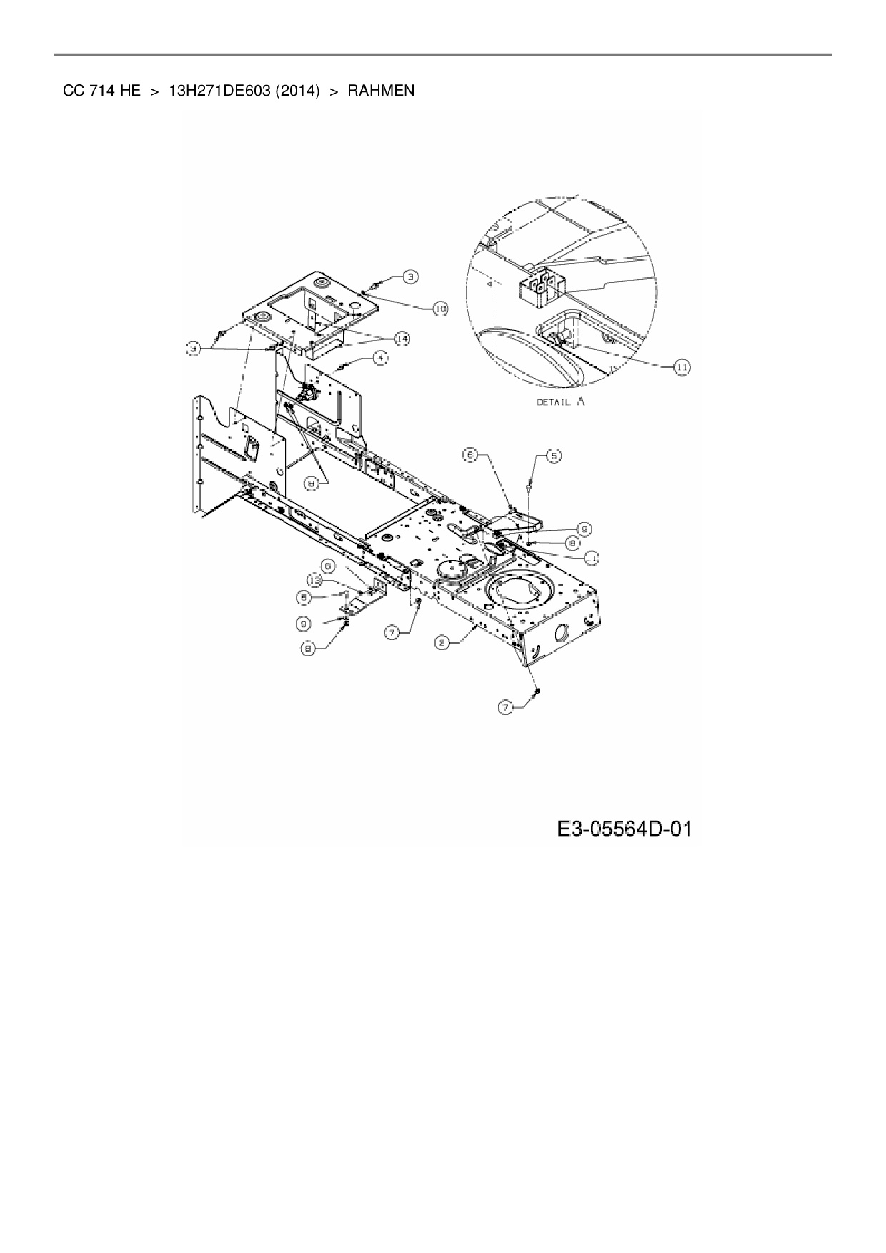 Zeichnung für Cub Cadet Rasentraktor CC 714 HE mit der Geräte-Artikelnr. 13H271DE603 ab Baujahr 2014: