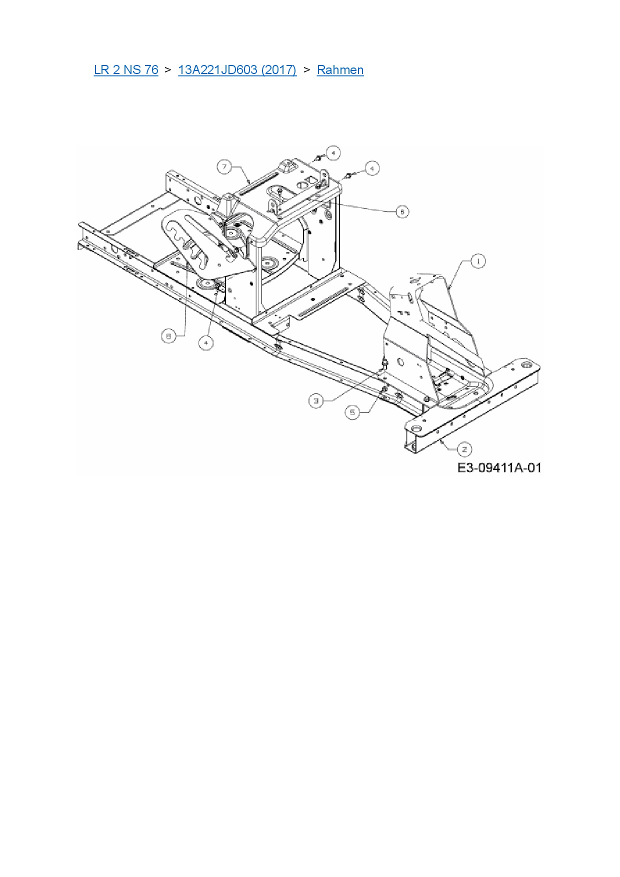 Ersatzteile für Rasentraktor Cub Cadet LR 2 NS 76 aus der Zeichnung Rahmen:
