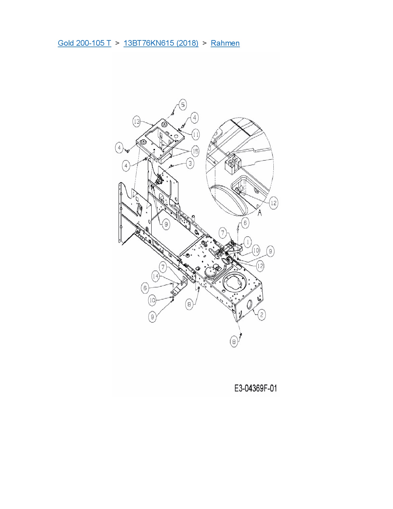 Zeichnung für MTD Rasentraktor Gold 200-105 T mit der Geräte-Artikelnr. 13BT76KN615 ab Baujahr 2018: