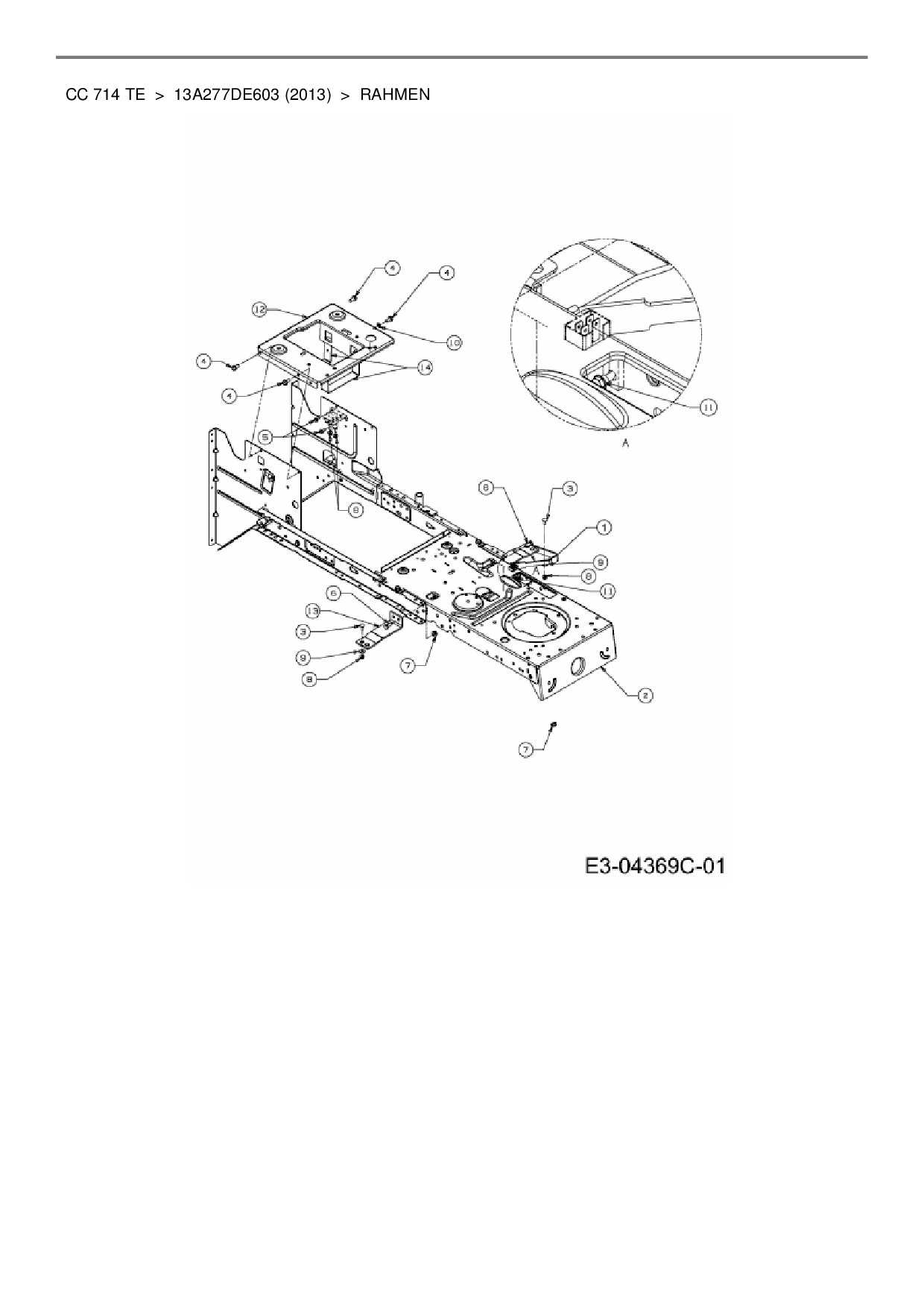 Ersatzteile für Rasentraktor Cub Cadet CC 714 TE aus der Zeichnung Rahmen: