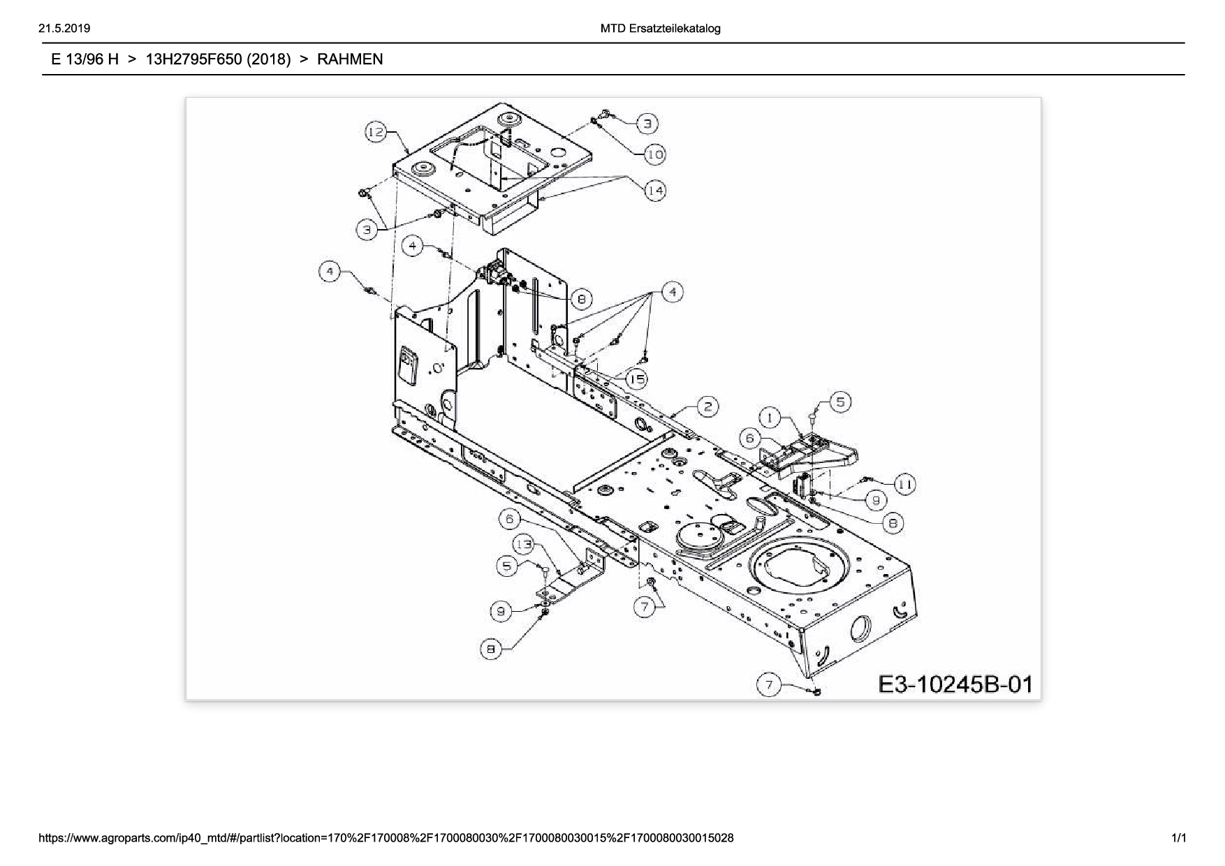 Ersatzteile für Rasentraktor Wolf-Garten Expert E 13/96 H aus der Zeichnung Rahmen: