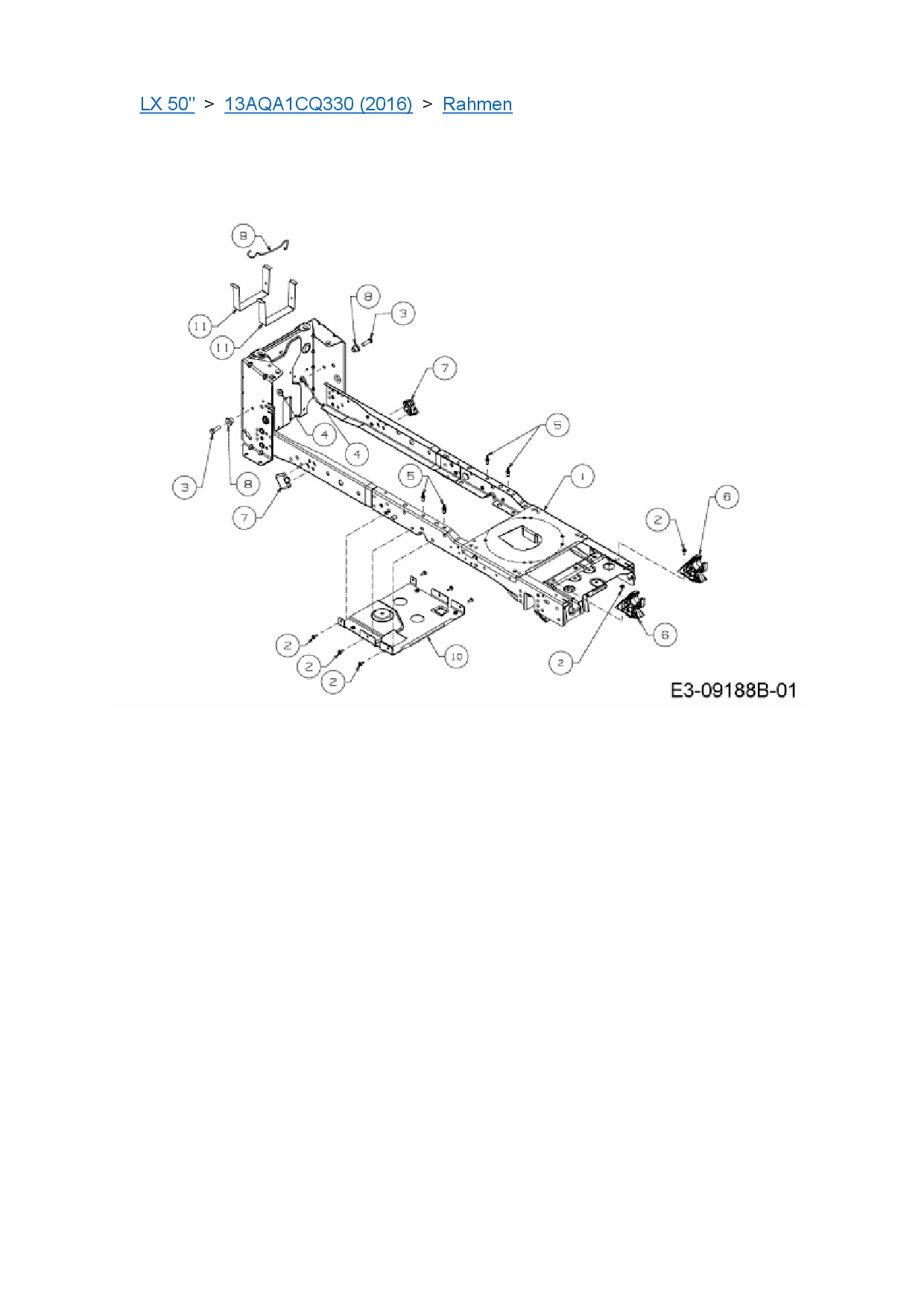 Ersatzteile für Rasentraktor Cub Cadet LX 50" aus der Zeichnung Rahmen: