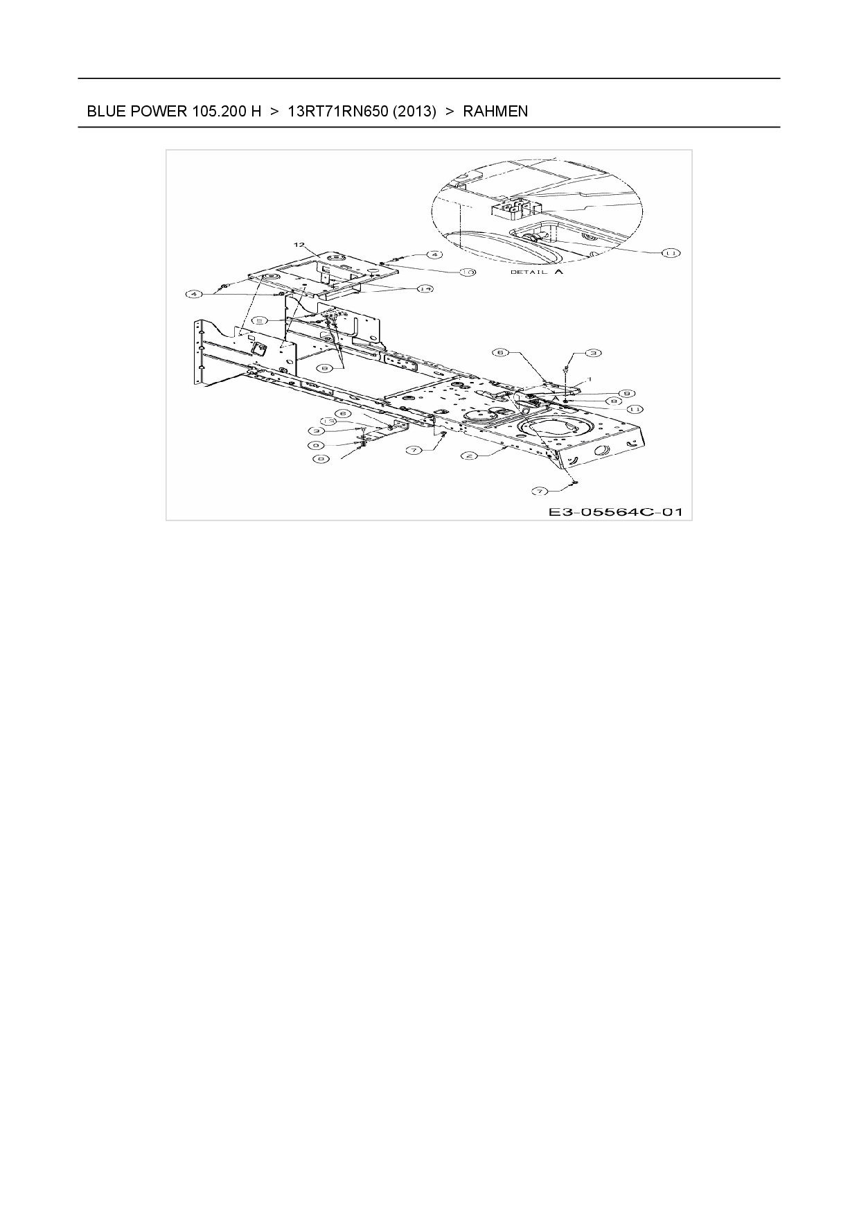 Ersatzteile für Rasentraktor Wolf-Garten Blue Power 105.200 H aus der Zeichnung Rahmen: