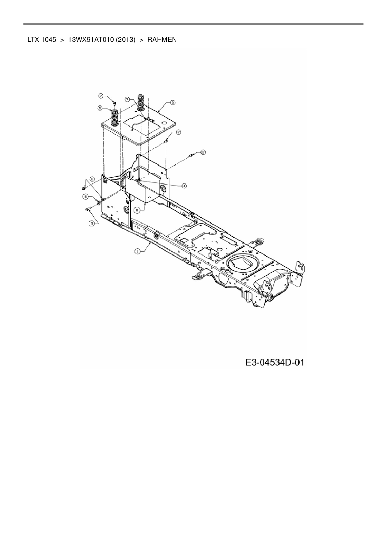 Ersatzteile für Rasentraktor Cub Cadet LTX 1045 aus der Zeichnung Rahmen: