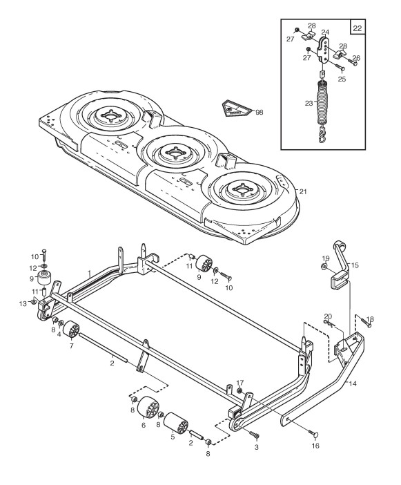 Zeichnungen von Stiga Frontaufsitzmäher Park Mähdecks mit Geräte Nr. 13-2915-27 ab Baujahr 2004