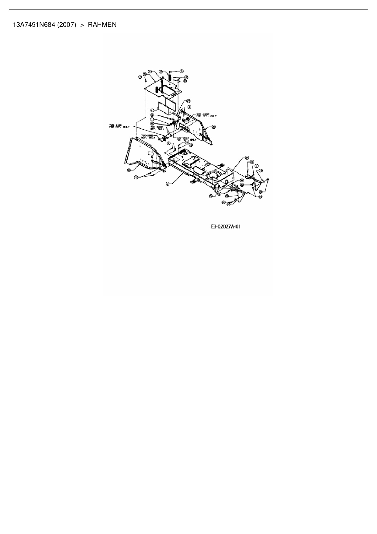 Ersatzteile für Rasentraktor Bolens BL 200/105 H aus der Zeichnung Rahmen: