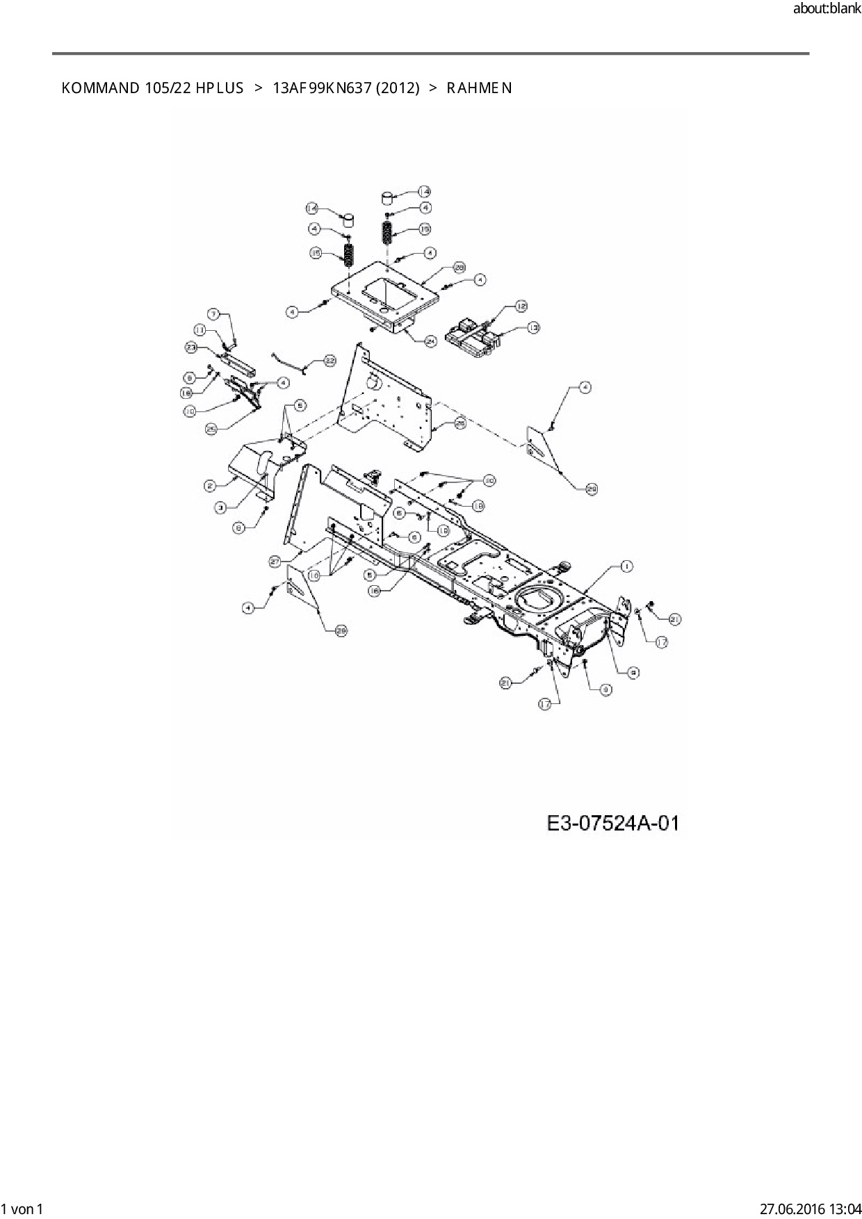 Ersatzteile für Rasentraktor EFCO Kommand 105/22 HPlus aus der Zeichnung Rahmen: