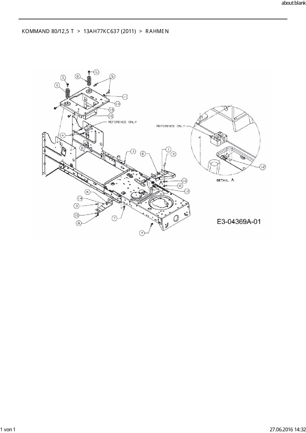 Ersatzteile für Rasentraktor EFCO Kommand 80/12,5 T aus der Zeichnung Rahmen: