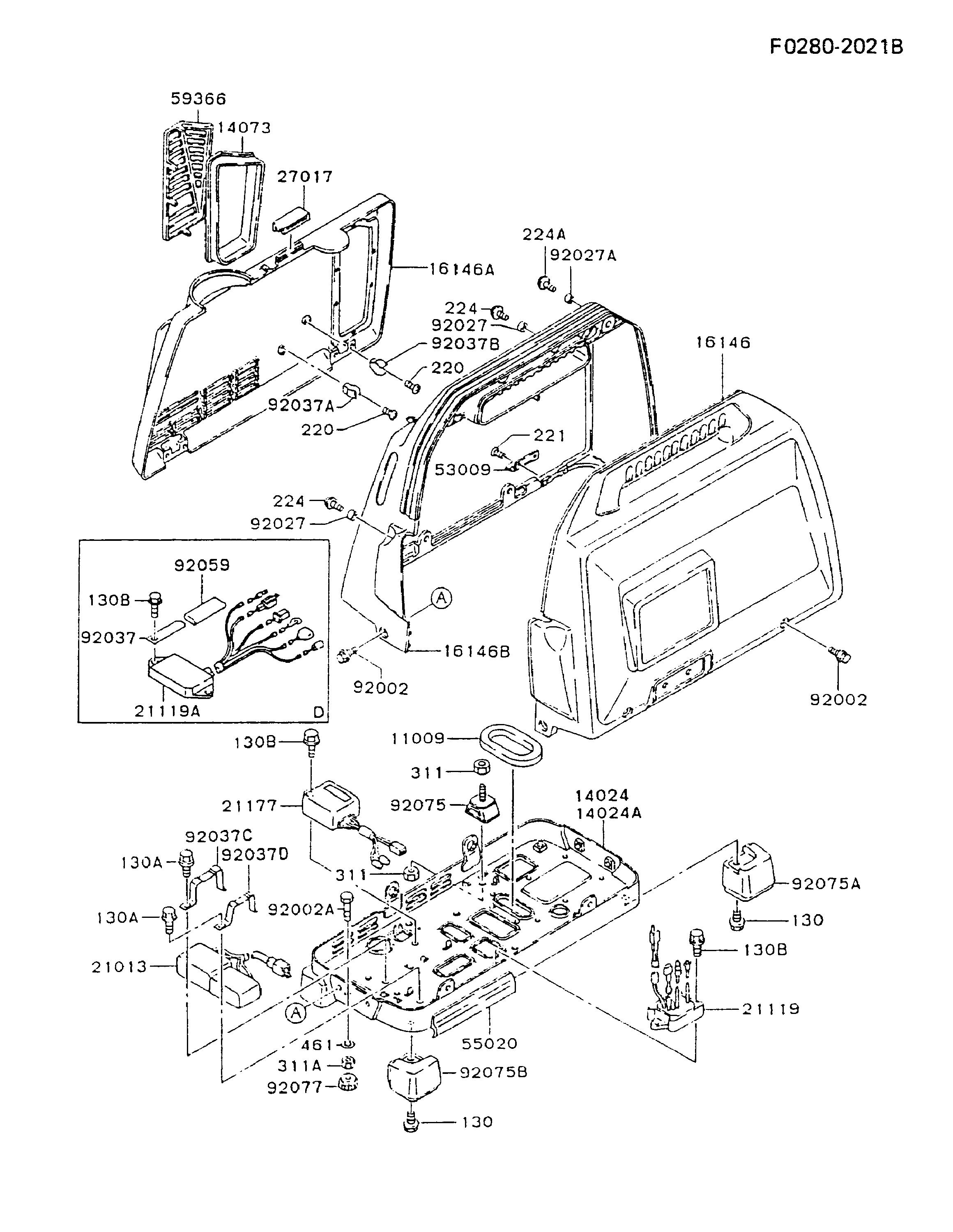 Hier finden Sie alle Ersatzteile von Kawasaki Generatoren GD550A-DS55 (GD550A) aus der Zeichnung Rahmen: