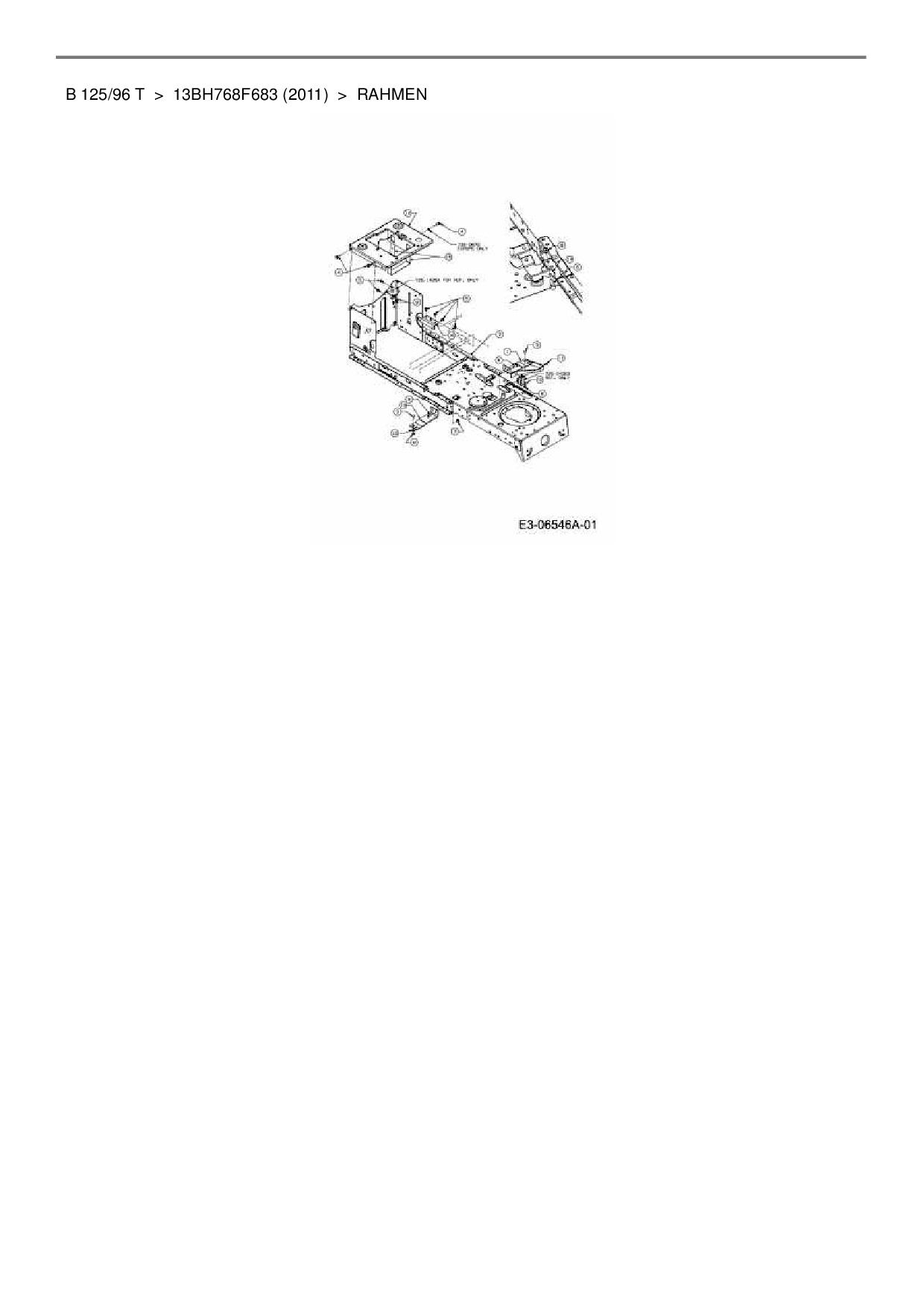 Ersatzteile für Rasentraktor Black-Line B 125/96 T aus der Zeichnung Rahmen: