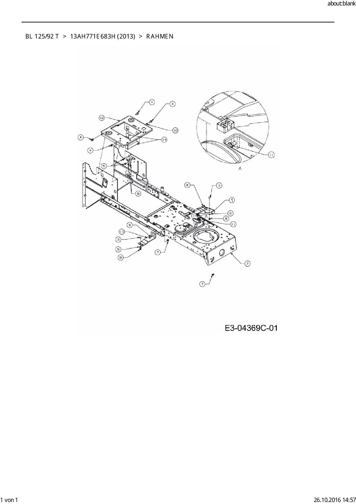 Zeichnung für Black-Line Rasentraktor BL 125/92 T mit der Geräte-Artikelnr. 13AH771E683H ab Baujahr 2013: