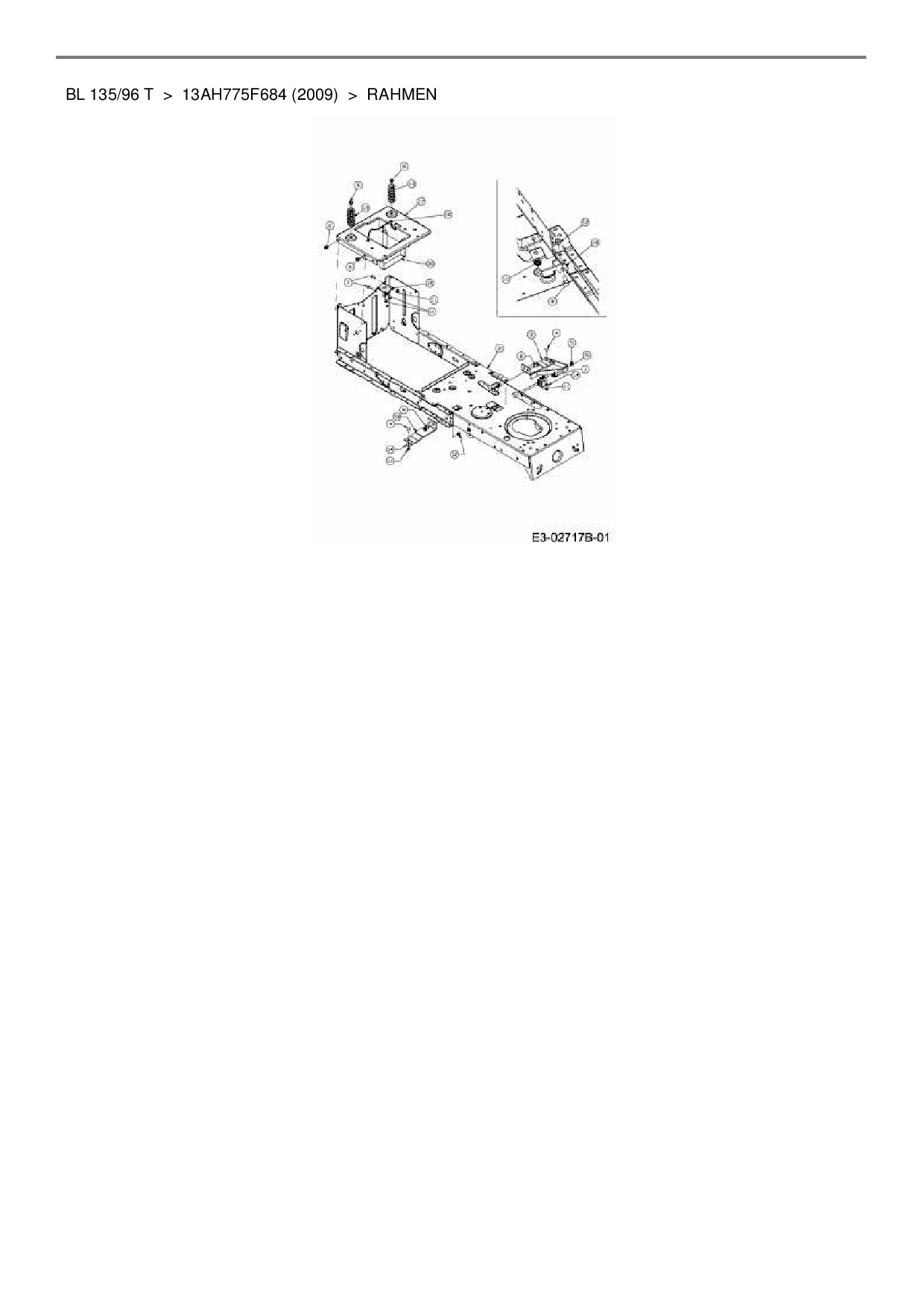 Ersatzteile für Rasentraktor Bolens BL 135/96 T aus der Zeichnung Rahmen: